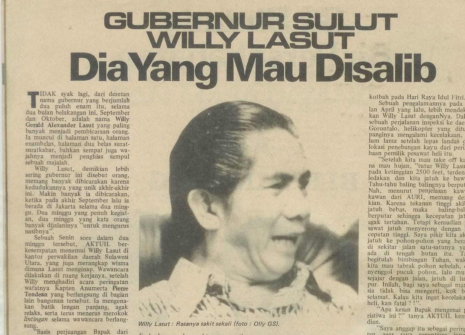 Foto Utama: Sebuah artikel dalam Majalah Tempo yang menguraikan tentang “pemecatan” yang tidak adil Willy Lasut sebagai Gubernur Sulawesi Utara oleh Presiden Suharto.